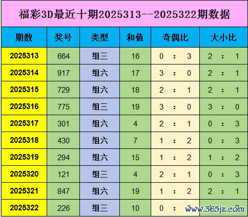 福彩3D上期开出奖号为226,奖号为组三阵势,和值为10,奇偶比为0 : 3,大小比为1 : 2。